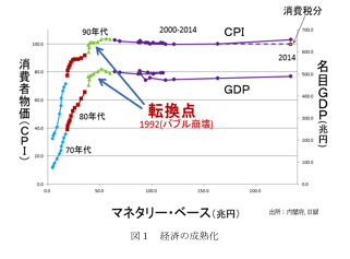 日本経済は1990年頃を境に、それまでの順調な成長局面から20年以上も続く長期不況に陥った。同様の事態は欧米諸国でも現れている。従来の経済学ではこの不況を短期の調整局面としてしか考えず、経済政策も短期不況を念頭にしており、思うような成果が出ていない。実際、以前には効果のあった金融緩和が、近年まったく効果を失っている (図1)。そのため、新たな長期不況の理論の確立が急務である。